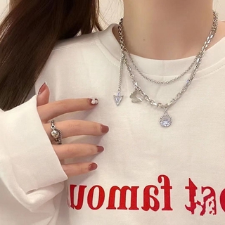 Dây chuyền thiết kế hai lớp mặt hình bướm giọt nước phong cách Hàn Quốc hip hop