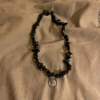 Dây Chuyền Mặt Tròn Đính Pha Lê Đen Phong Cách Retro Thời Trang