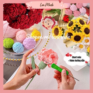 DIY gói nguyên liệu tự đan móc bó hoa bằng len handmade quà tặng ý nghĩa cặp đôi amigurumi thủ công crochet lenmade