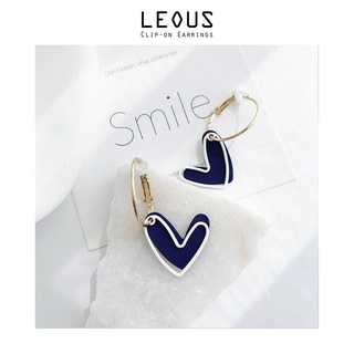 Khuyên tai kẹp không bấm lỗ chốt cố định K270 bằng hợp mạ bạc hình trái tim dáng dài Leous Accessories