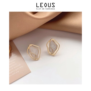 Khuyên tai kẹp không bấm lỗ chốt cố định K200 bằng hợp kim mạ vàng hình vuông đính hạt trai bigsize dáng ngắn Leous