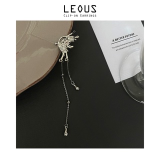 Khuyên tai kẹp vành một bên không bấm lỗ K019 bằng hợp kim mạ bạc hình cánh bướm dáng dài Leous Accessories