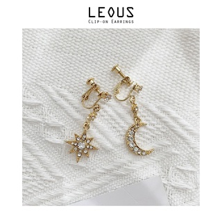 Khuyên tai kẹp không bấm lỗ chốt điều chỉnh K021 bằng hợp kim mạ vàng hình mặt trăng ngôi sao đính đá dáng dài Leous