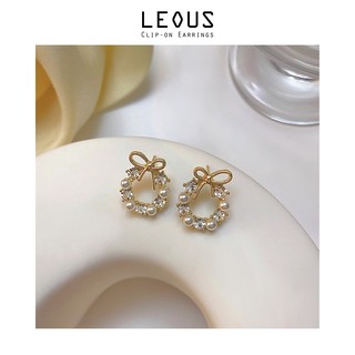 Khuyên tai kẹp không bấm lỗ chốt cố định K304 bằng hợp kim mạ vàng hình tròn đính nơ hạt trai dáng ngắn Leous