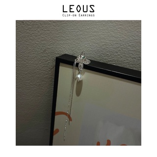 Khuyên tai kẹp không bấm lỗ chốt cố định K093 bằng hợp kim mạ vàng bất đối xứng hình bông hoa cánh bướm dáng dài Leous