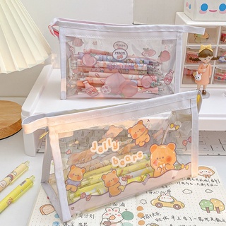 INS Túi bút chì không thấm nước trong suốt Phim hoạt hình dễ thương Hộp đựng bút chì dung lượng lớn Túi mỹ phẩm Túi đựng bút chì học sinh