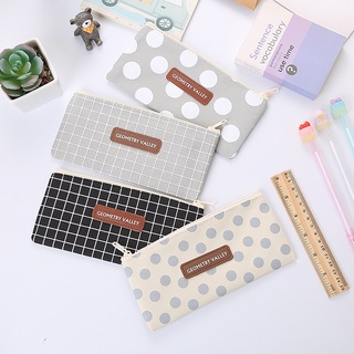 Túi đựng bút bằng vải bạt họa tiết kẻ ô đơn giản sức chứa lớn phong cách Hàn Quốc