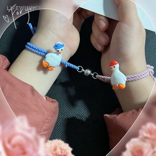 Set 1 / 2 Vòng Tay Bện Dây Thừng Gắn Mặt Hình Vịt / Chữ Love You Cho Cặp Đôi