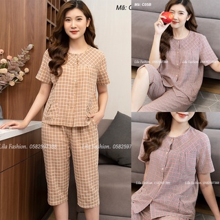 Bộ cọc tay hè, quần lửng kẻ caro cao cấp mềm mịn, mát khi mặc
