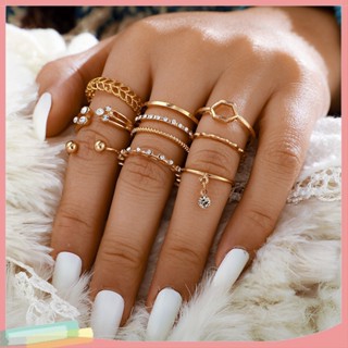 Bộ 8 Nhẫn Hợp Kim Đính Đá Lấp Lánh Thời Trang Cho Nữ