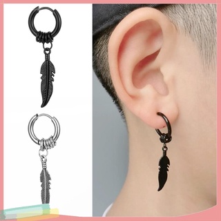1 Đôi Bông Tai Hình Lông Vũ Bằng Thép Không Gỉ Màu Sắc Đơn Giản