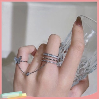 Bộ Nhẫn Hợp Kim Hở Hai Lớp Trang Trí Hình Bướm Đính Đá Xinh Xắn Cho Nữ