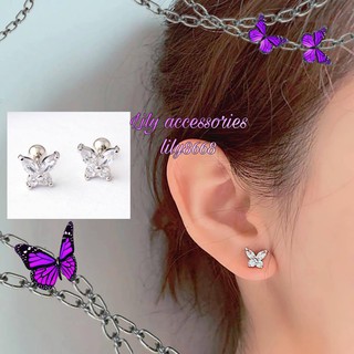 Butterfly Earring khuyên tai titan hình con bướm đính đá không gỉ không đen không dị ứng