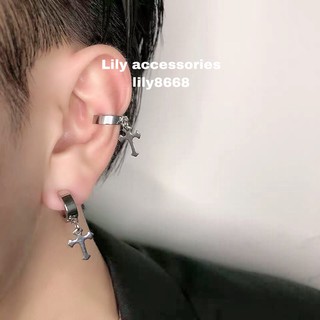 Double Cross EarCuff kẹp tai titan thánh giá không cần xỏ lỗ cho nam nữ không gỉ không đen