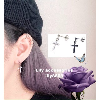 Cross Earring khuyên tai titan thánh giá không gỉ không dị ứng không đen