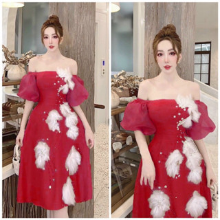 Ms1450y ĐẦM BẸT VAI ĐÍNH LÔNG KẾT HOA full size S/M/L /Xl
