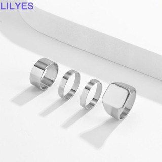 LILYES Set 4 Nhẫn Đơn Giản Phong Cách Hip Hop Đường Phố Hàn Quốc