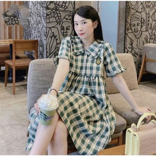 Váy Bầu, Đầm Bầu Thiết Kế Dáng Suông Sọc Caro Tay Bèo Chất Lụa Hàn Mềm Mát A057 Lin Store66