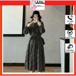 Đầm Bầu Váy Bầu Thu Đông Dài Tay Hoa Nhí Freesize (43-75kg) Chất Voan Dáng Suông Cổ Ren Kèm Đai Thắt A078 Lin Store66