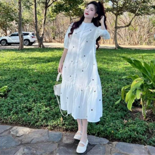 Đầm Bầu Mùa Hè. Váy Bầu Thiết Kế Thời Trang Tay Bèo, Cổ Tròn Dễ Thương Mặc Đi Làm Đi Chơi Dự Tiệc A175 LinStore66