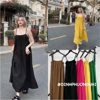 Váy Bầu Đầm Bầu 2 Dây, Chất Đũi Tăm Hàn, Dáng Dài, Xinh Xắn Mặc Đi Chơi Đi Biển A186 Lin Store66