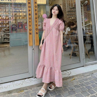 Váy Bầu Mùa Hè. Đầm Bầu Thiết Kế Caro, Dáng Dài, Cổ Chữ V Xinh Xắn Tiểu Thư A187 Lin Store66
