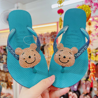 dép HVN kim tuyến viền xanh biển mix charm nữ hoàng xanh