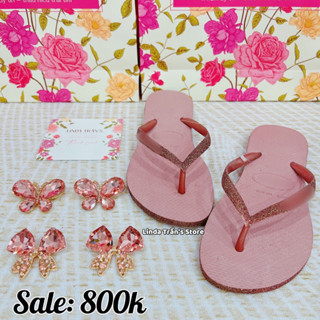 COMBO Dép HVN KIM TUYẾN VIỀN HỒNG RUỐC + 2 CHARM