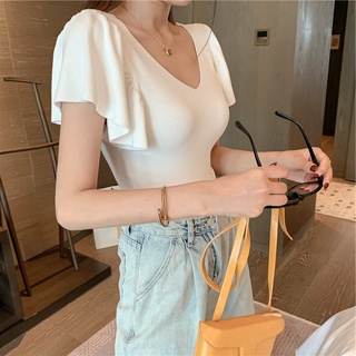 Áo Thun Dệt Kim Tay Ngắn Cổ Chữ v Thời Trang Dành Cho Nữ
