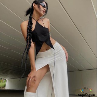 Linglongxi2 Áo Thun Ngắn Đa Năng Dạng Treo Cổ Gia Vị Ngôi Sao Năm Cánh Hở Lưng Siêu Ngắn
