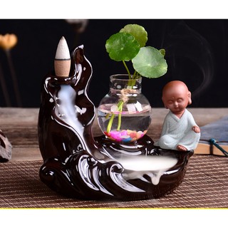Thác Khói Trầm Hương Gốm Sứ Cao Cấp m61 - ThầnTài Bên Thác (tặng 10 nụ trầm Việt tự nhiên)