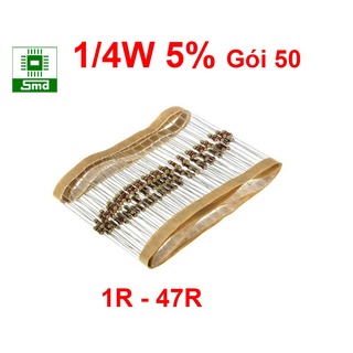 Trở Cắm vạch màu 1/4W 5% 50 Con/Túi Giá Trị Trong Khoảng 1R - 47R Ohm linh kiện điện tử điện trở cắm 0.25W