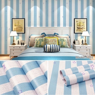Giấy dán tường sọc sao xanh , có sẵn keo