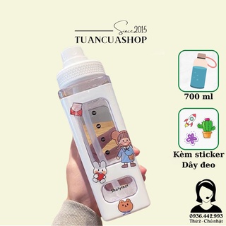 Bình nước vuông 700ml kèm stickers, dây đeo dễ thương, bình nước đáng yêu cho bé