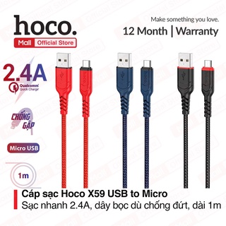 Cáp sạc nhanh Hoco X59 Chân Micro chống gẫy gập dài 1m