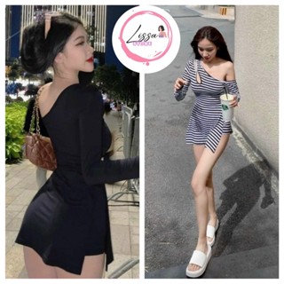 ĐẦM body Set đồ kèm quần khoét vai sọc đen hai màu cực cá tính 065 (Giá sỉ) Lissa