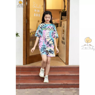 Đồ bộ Bé gái LITIBABY thun cotton ngắn tay vải loang size đại 8/16 tuổi [BBG0]