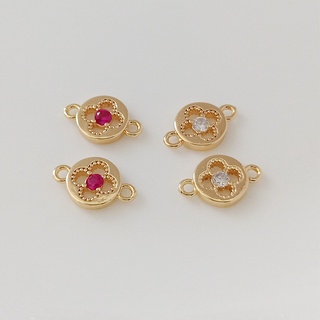 Hạt Cườm Mạ Vàng 14K Hình Trái Tim Bốn Lá Đính Đá Zircon Diy