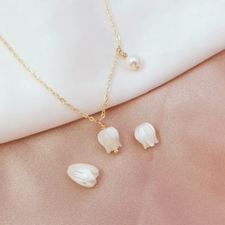 Bông Tai DIY Khắc Hình Vỏ Sò / Hoa Tulip Lily / Bud Xuyên Qua Lỗ Làm Bằng Tay