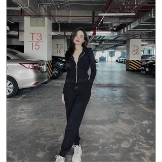 Đồ bộ nữ len tăm khóa mũ sọc thể thao set bộ nữ thu đông LD015