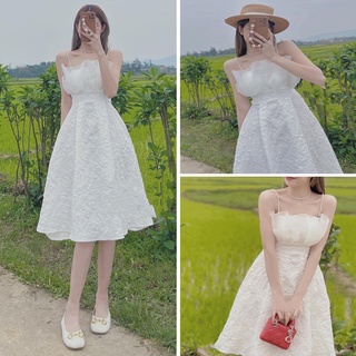 Đầm dự tiệc sang chảnh nữ 2 dây xốp hoa nổi váy tiểu thư nữ dáng ngắn LD015