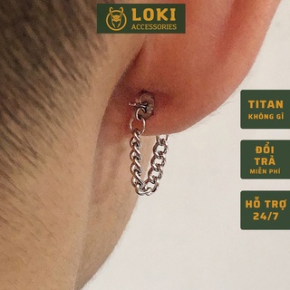 Khuyên Tai Nam Dây Xích Small Loki Accesories Thời Trang Hàn Quốc Màu Bạc Đen - Hoa tai Small