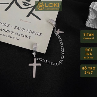 Khuyên Tai Nam Unisex Tròn Kẹp Vành 2T Eardrop Hình Chữ Thập Cá Tính Chất Loki Accessories Màu Bạc Đẹp Titan -2T Eardrop
