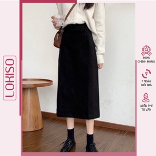 Chân váy chữ a dài qua gối xẻ tà lưng cao công sở bigsize LOKISO CV27