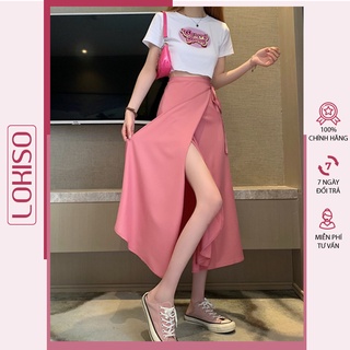 Chân váy dài midi chữ a bigsize xẻ tà qua gối cột dây eo LOKISO CV23