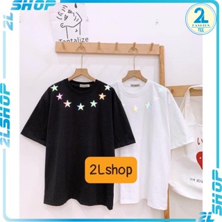 Áo thun unisex viền cổ ngôi sao phản quang 7 màu - áo phông nam nữ viền sao phản quang form rộng ( có flash)
