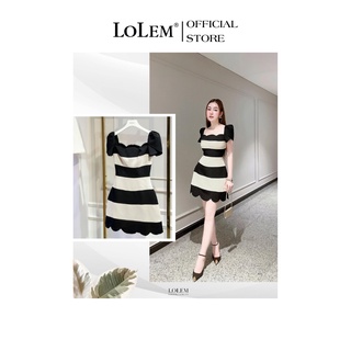 Đầm cổ vuông dự tiệc LOLEM DX417 phối tơ mây chất tăm Nhật bền đẹp
