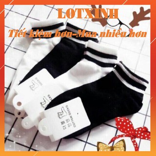 COMBO 5 đôi Tất cổ ngắn thời trang kẻ sọc hàn quốc 2 màu đen trắng khử mùi hôi chân TATNU01