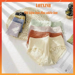 Quần Lót Nữ Cotton vải Nhăn phối viền ren đính nơ xinh kháng khuẩn xuất nhật LOTNU07