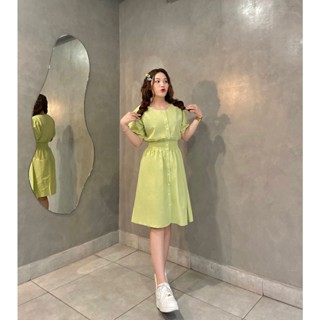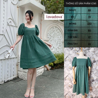 Đầm xanh két ( xanh cổ vịt ) cổ vuông tay nhún thun - Lovadova 23D03C002